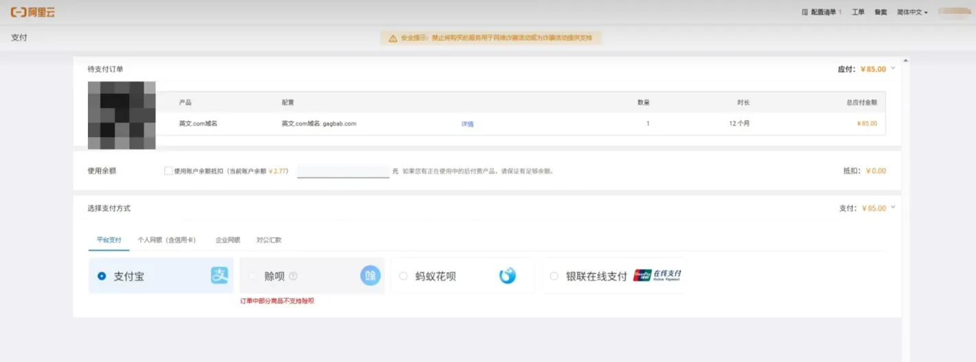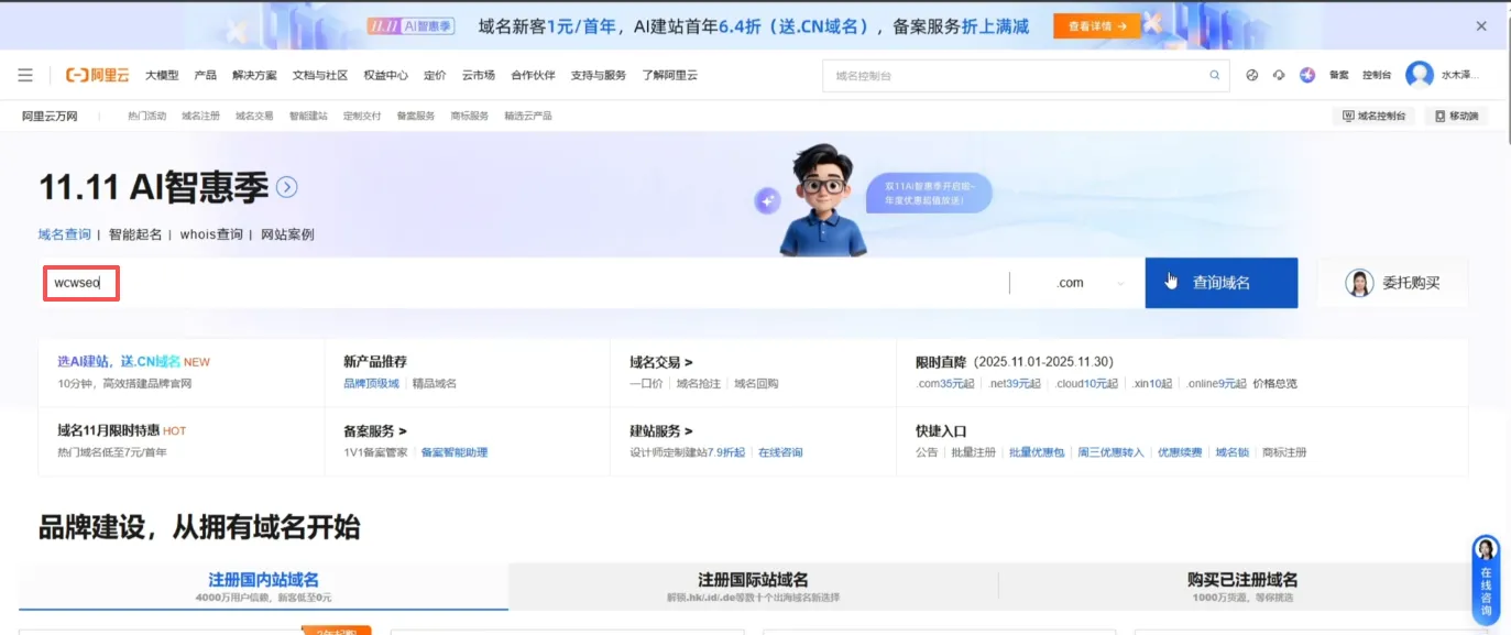 阿里云注册域名