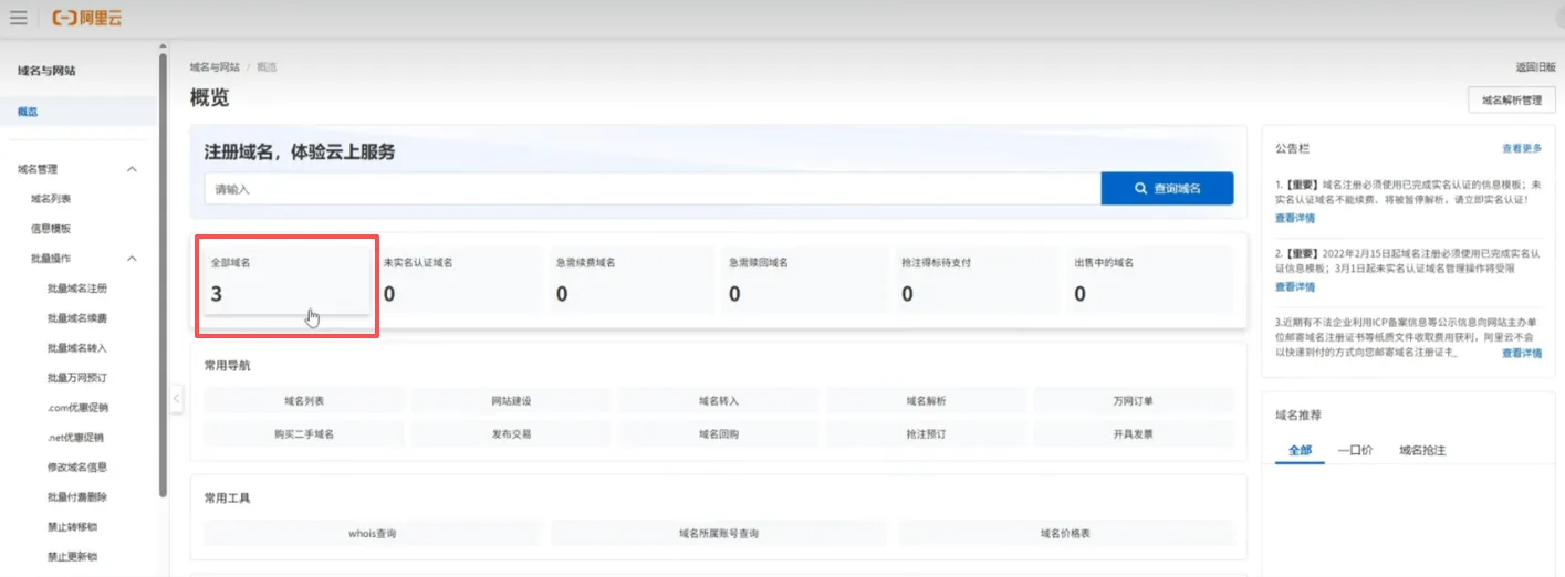 所有阿里云域名