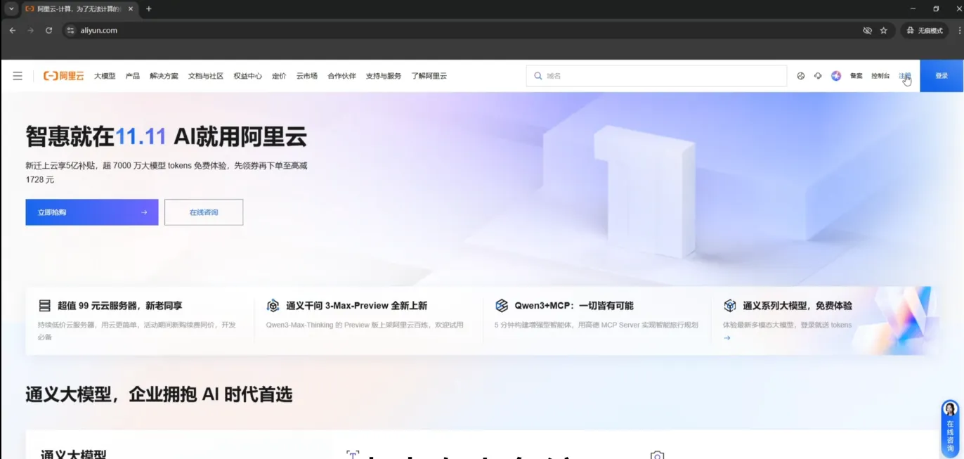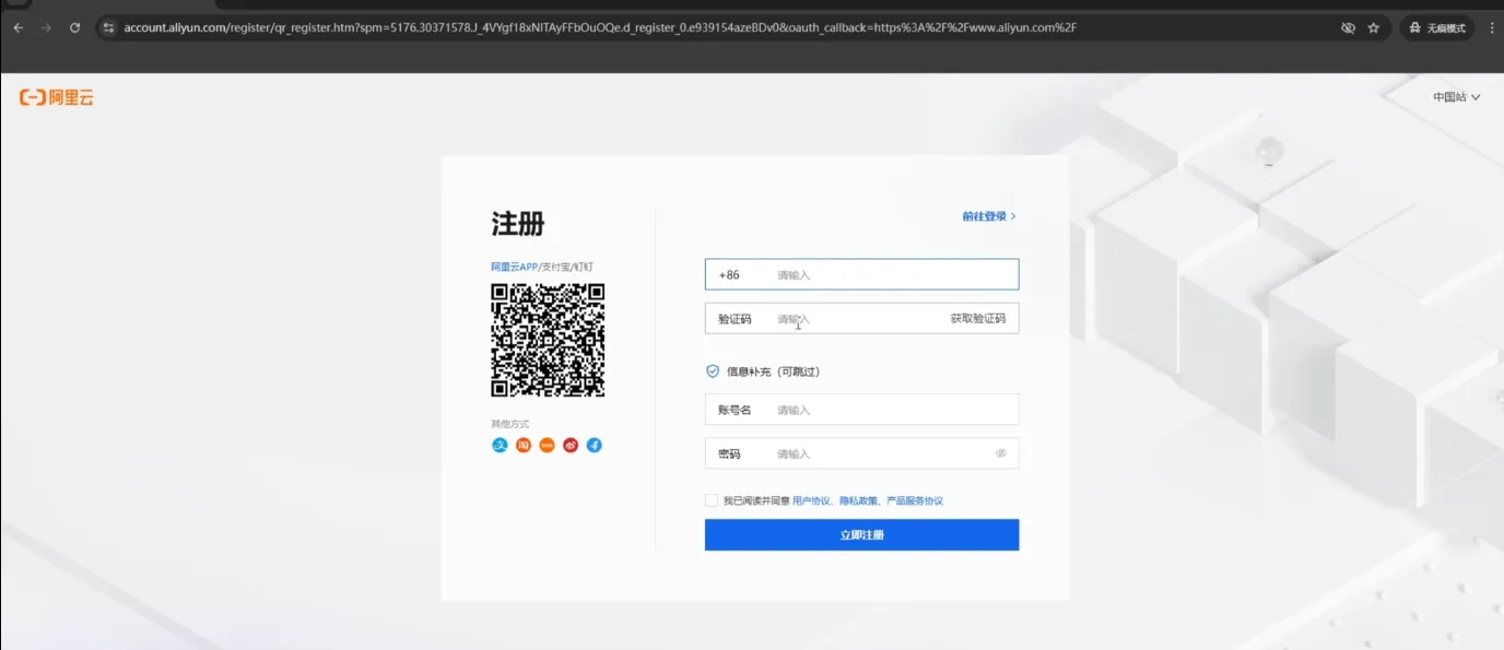 首先,我们注册阿里云官网账号。