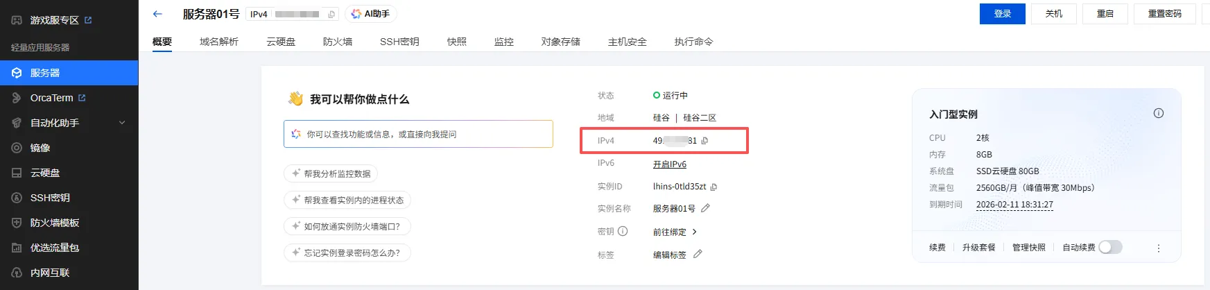 登录腾讯云,选择 控制台我的资源轻量应用服务器,就能看到服务器,然后点击该服务器,跳转到以上页面,我们复制下上图红框圈定的ip,粘贴到我们的记事本中备用。