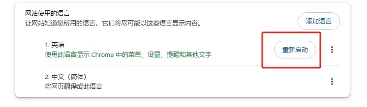 然后点击“重新启动”按钮,以确保语言设置生效。