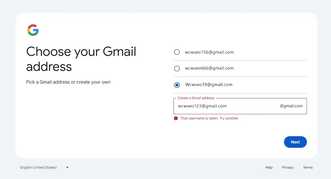 输入想要注册的Gmail邮箱地址。
