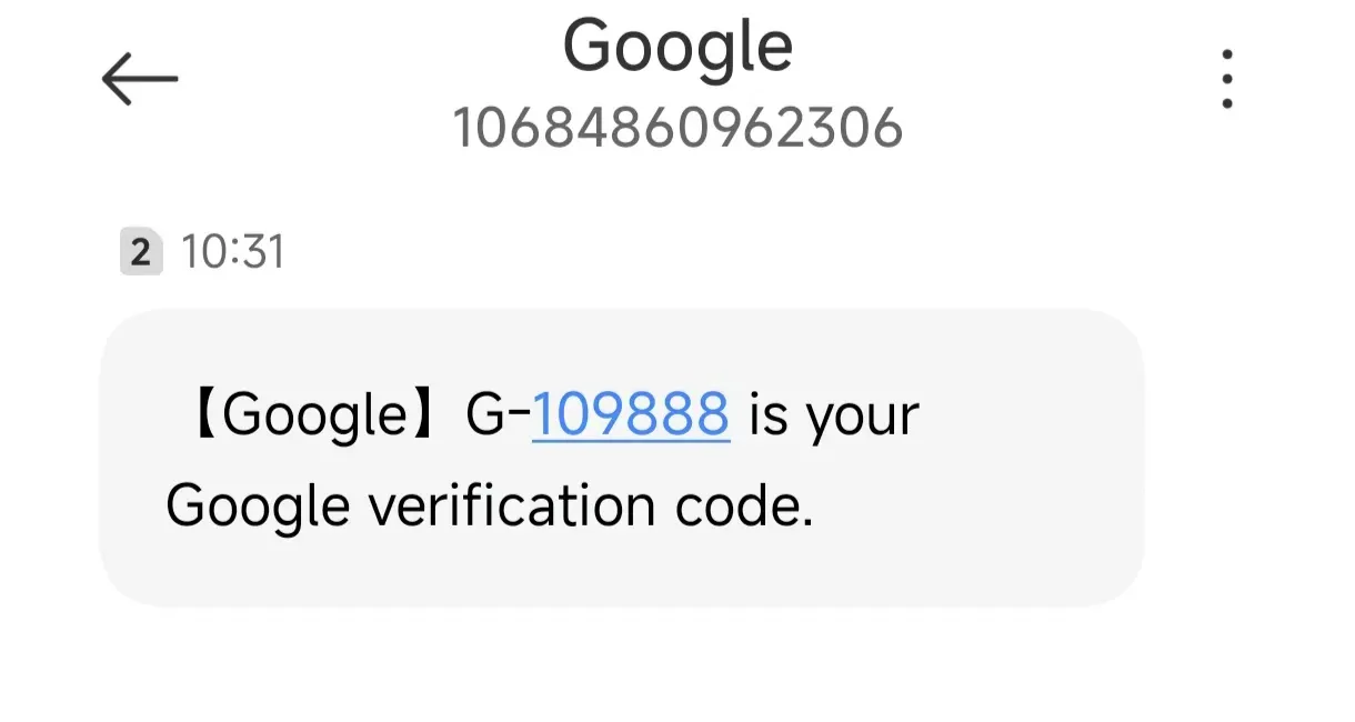 接着该手机号会收到来自Google发送的短信验证码。