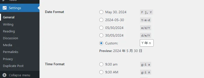 日期格式是在wordpress后台-设置-常规里面进行修改的: